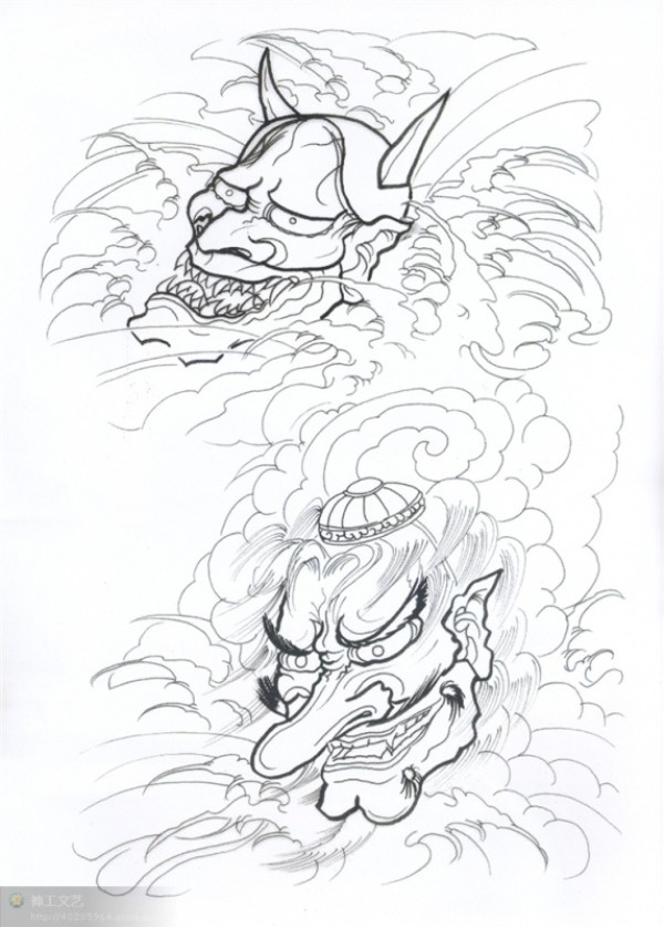 能面万媚纹身手稿_52张日式能剧面具纹身手稿图案素材欣赏