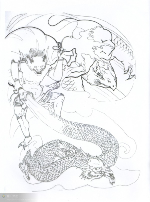龙纹身手稿_一组老传统黑灰龙手稿纹身图案