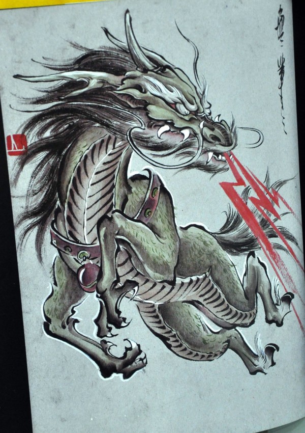 龙纹身手稿_一组老传统黑灰龙手稿纹身图案