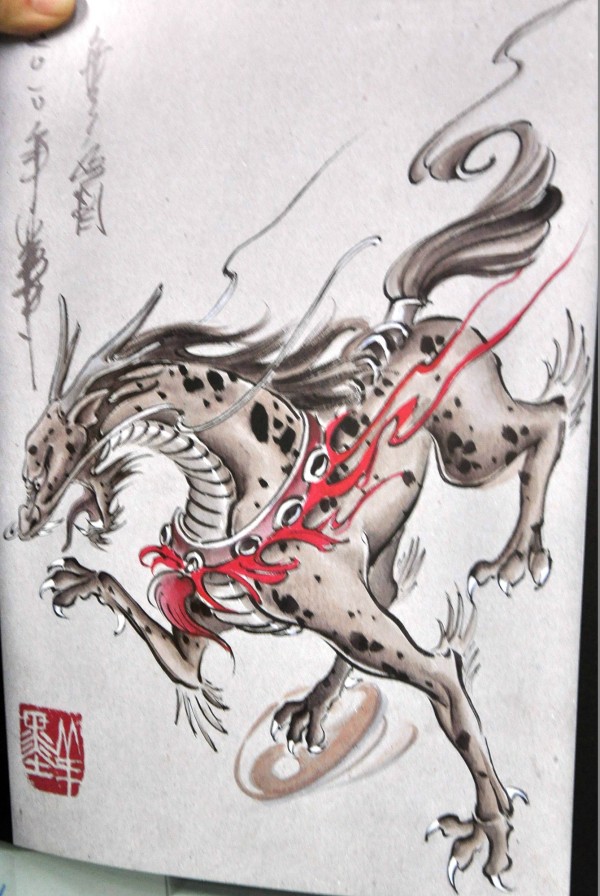 龙纹身手稿_一组老传统黑灰龙手稿纹身图案