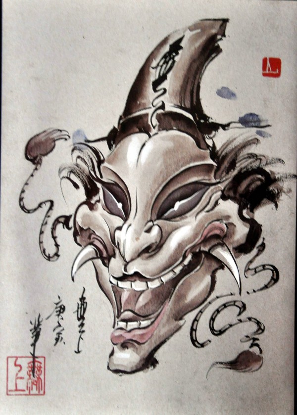 能面万媚纹身手稿_52张日式能剧面具纹身手稿图案素材欣赏
