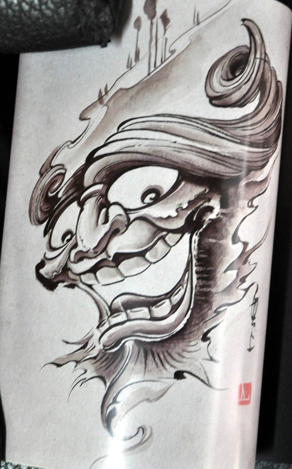 能面万媚纹身手稿_52张日式能剧面具纹身手稿图案素材欣赏