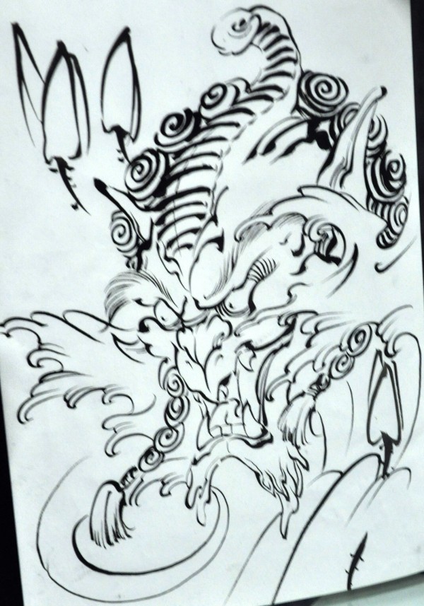 龙纹身手稿_一组老传统黑灰龙手稿纹身图案