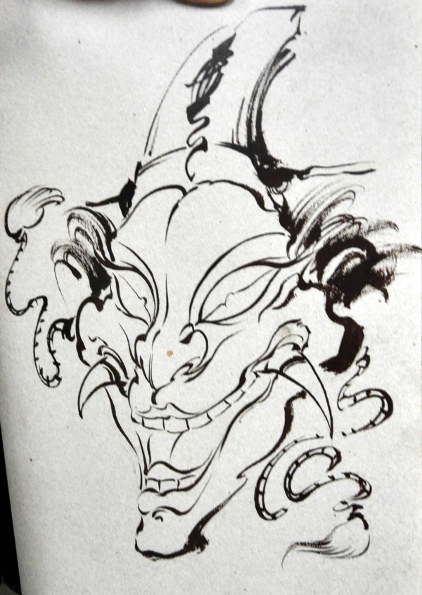 龙纹身手稿_一组老传统黑灰龙手稿纹身图案