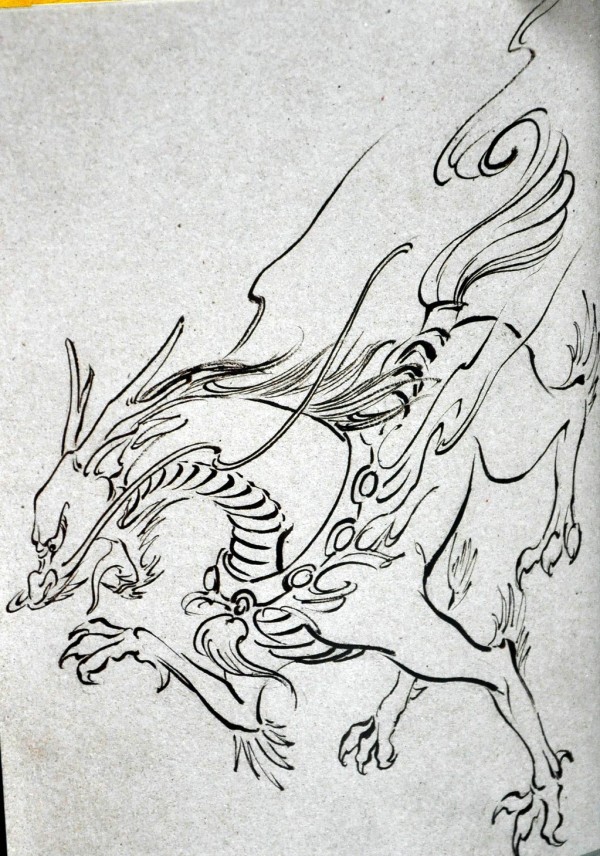龙纹身手稿_一组老传统黑灰龙手稿纹身图案
