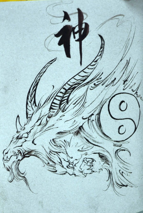 龙纹身手稿_一组老传统黑灰龙手稿纹身图案
