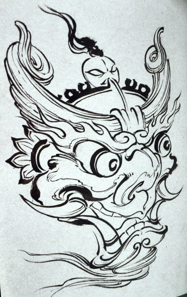 传统艺妓般若纹身图案手稿