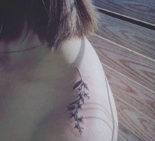 后肩唯美花藤英文图案图片_植物纹身图案大全_纹身图吧