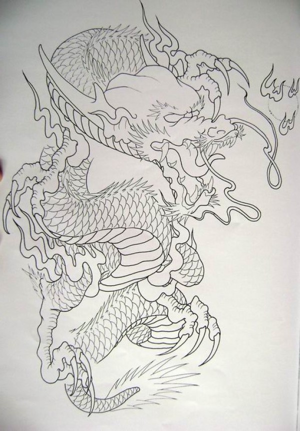 龙纹身手稿_一组老传统黑灰龙手稿纹身图案