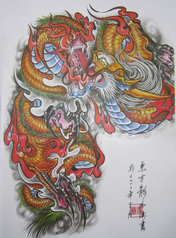 《东方龙》纹身手稿高清扫描图,大尺寸 60P
