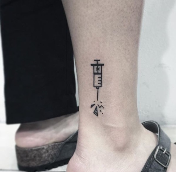 一组小腿处迷你小图案纹身刺青
