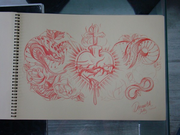 龙纹身手稿_一组老传统黑灰龙手稿纹身图案