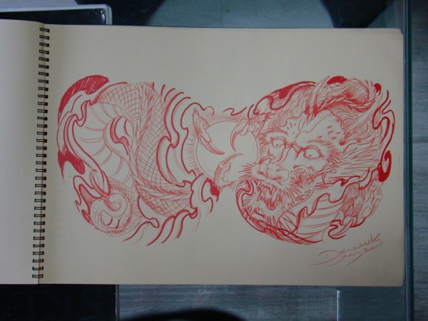 龙纹身手稿_一组老传统黑灰龙手稿纹身图案