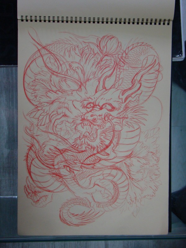 龙纹身手稿_一组老传统黑灰龙手稿纹身图案