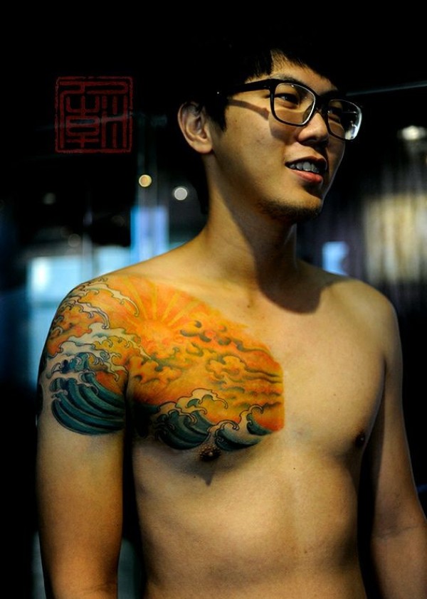 纹身图案胸部男 简洁大方的男生胸部纹身图案