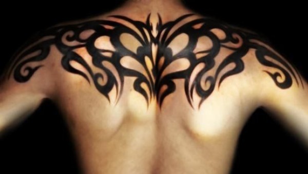 男性背部帅气的部落图腾纹身图案