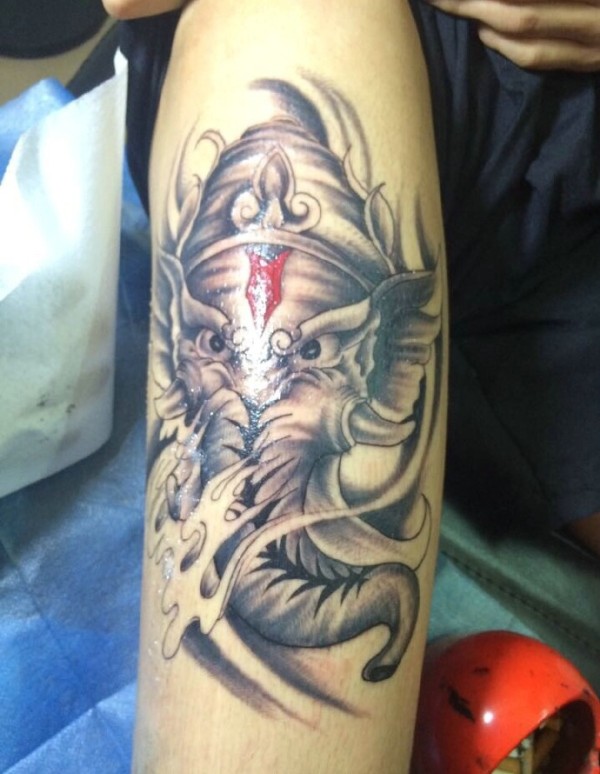 手臂黑灰象神_一组12张手臂上的黑灰象神纹身图案作品欣赏