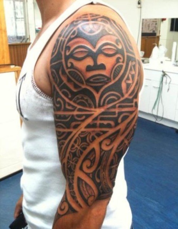 让人看到的是无限力量的男性半袖大臂部落图腾纹身图案