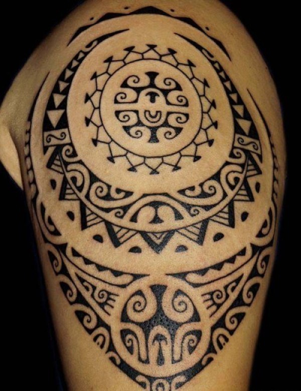 让人看到的是无限力量的男性半袖大臂部落图腾纹身图案