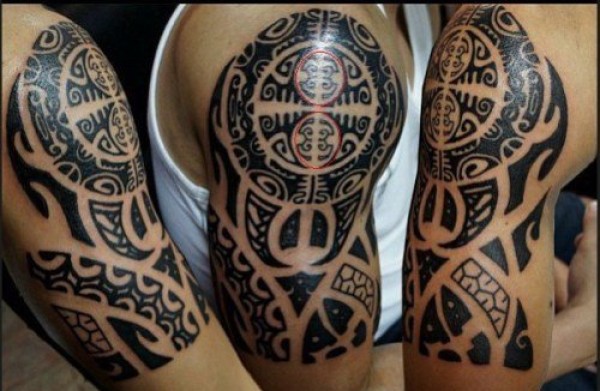 让人看到的是无限力量的男性半袖大臂部落图腾纹身图案