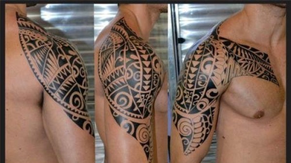 让人看到的是无限力量的男性半袖大臂部落图腾纹身图案