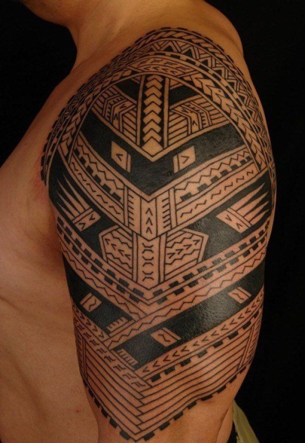 让人看到的是无限力量的男性半袖大臂部落图腾纹身图案
