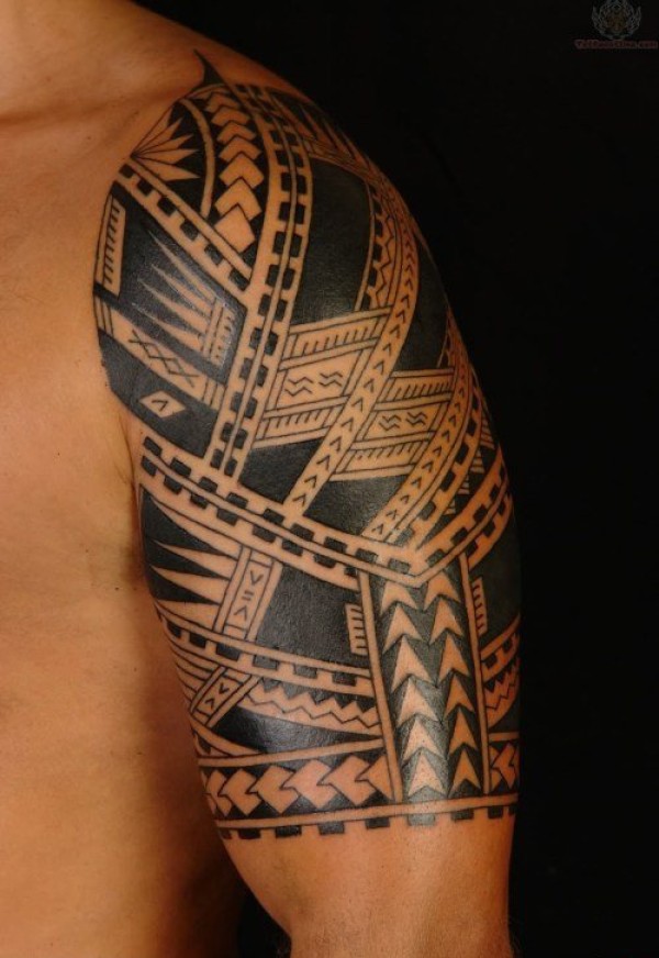 让人看到的是无限力量的男性半袖大臂部落图腾纹身图案