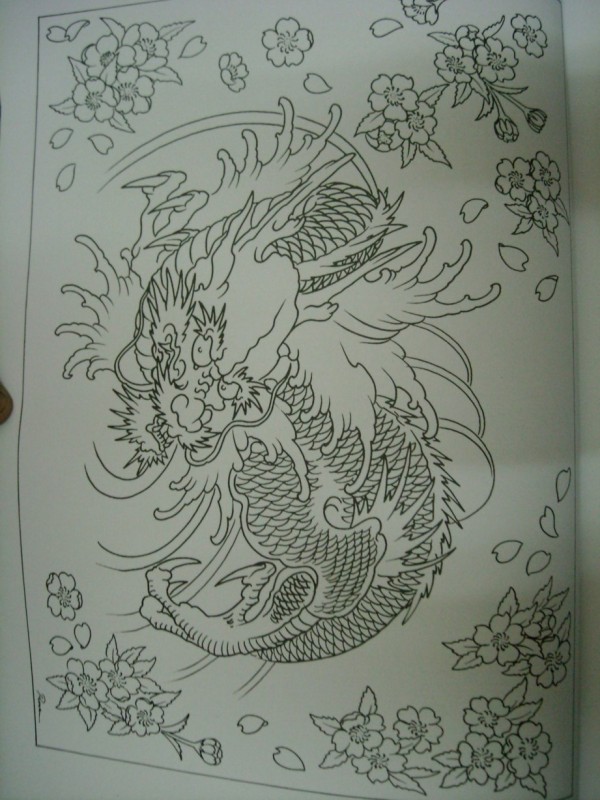 龙纹身手稿_一组老传统黑灰龙手稿纹身图案