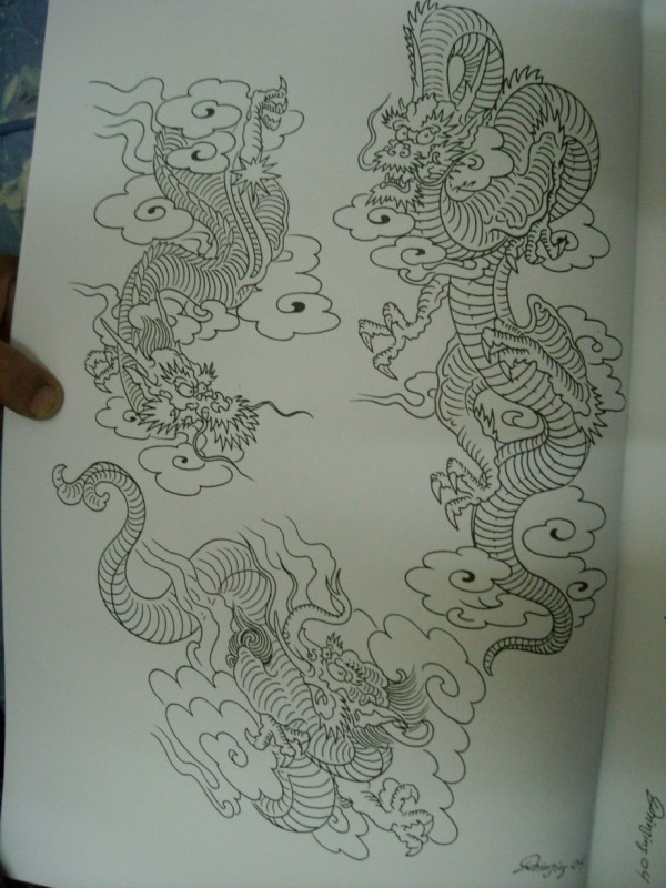 龙纹身手稿_一组老传统黑灰龙手稿纹身图案