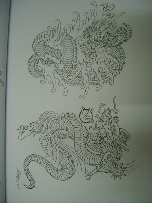 龙纹身手稿_一组老传统黑灰龙手稿纹身图案