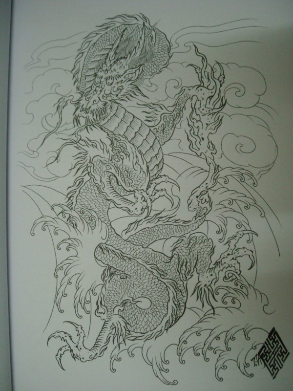 龙纹身手稿_一组老传统黑灰龙手稿纹身图案