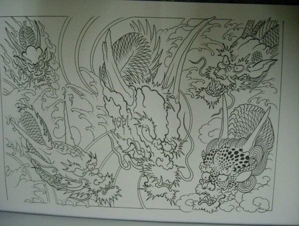 龙纹身手稿_一组老传统黑灰龙手稿纹身图案