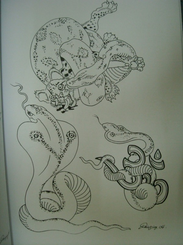 龙纹身手稿_一组老传统黑灰龙手稿纹身图案