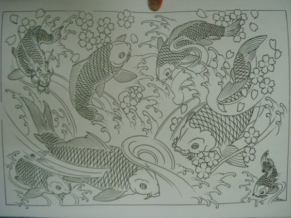 日式大板雾满背纹身手稿