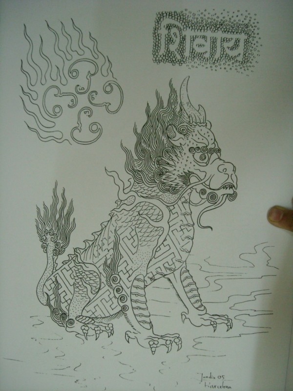 龙纹身手稿_一组老传统黑灰龙手稿纹身图案