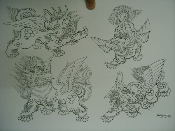 龙纹身手稿_一组老传统黑灰龙手稿纹身图案