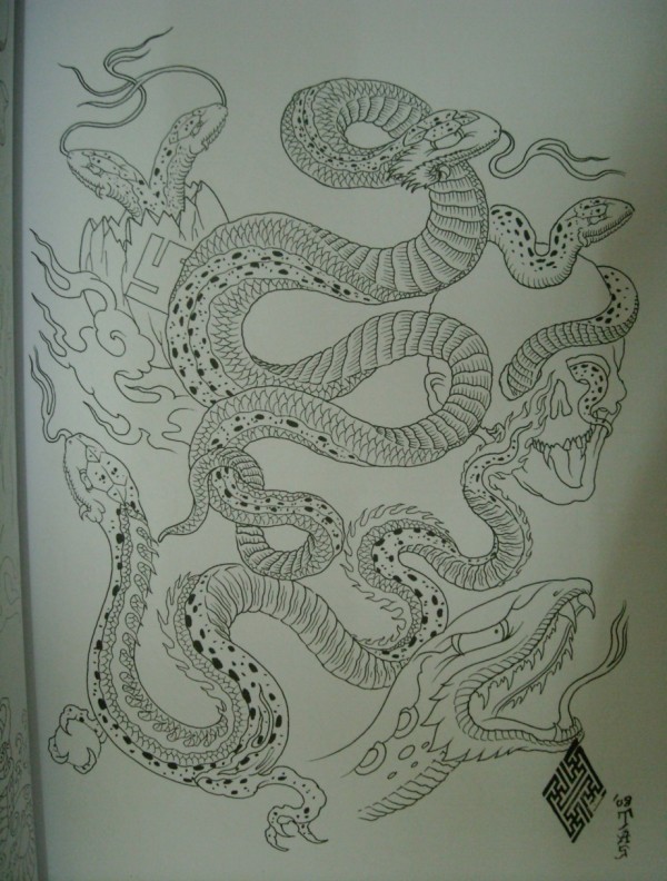龙纹身手稿_一组老传统黑灰龙手稿纹身图案