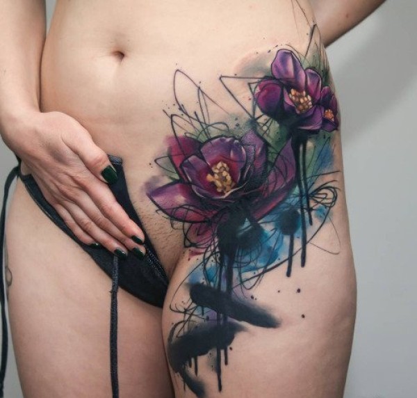 传统花腿纹身--18张传统风格的大花腿纹身图案作品