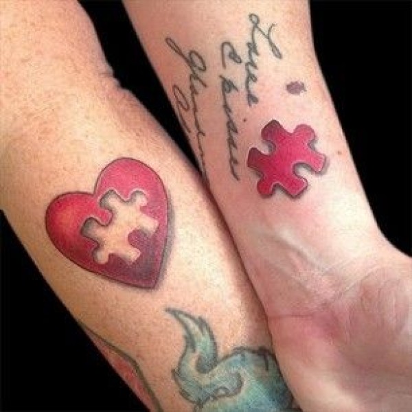 情侣手腕爱心拼图纹身