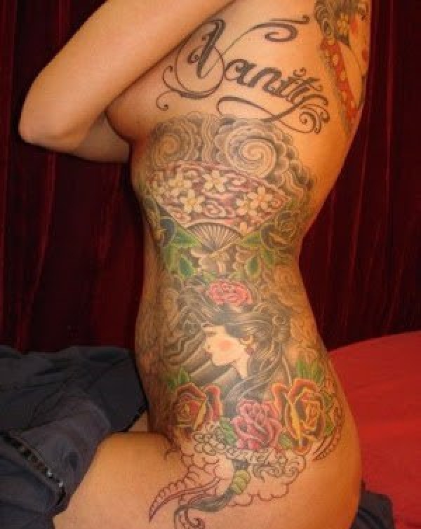 女性腰部莲花花纹刺青_腰部纹身图案大全_纹身图吧