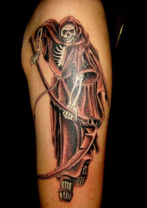 男性手大臂上帅气的死神纹身图案