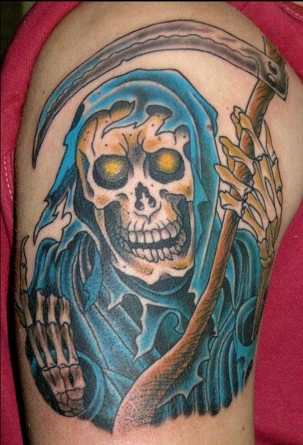 男性手大臂上帅气的死神纹身图案