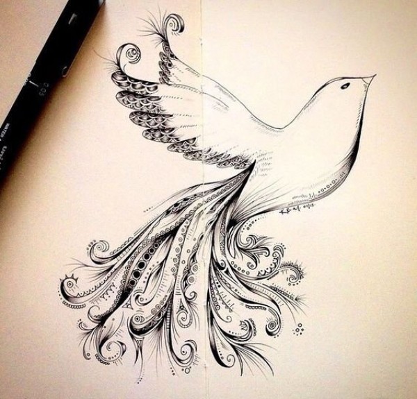 简洁帅气的鸽子纹身图案手稿素材