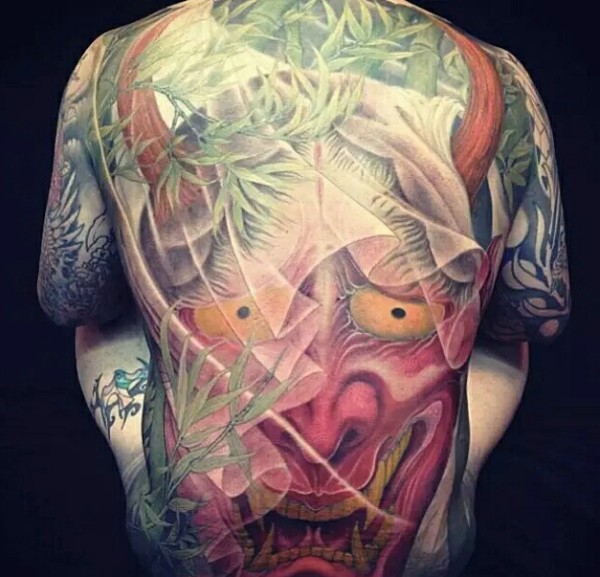 遮盖满背彩色大般若纹身图案