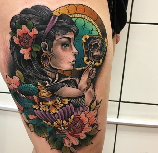 逼真的超现实主义花纹身图案来自纹身师莫拉莱斯