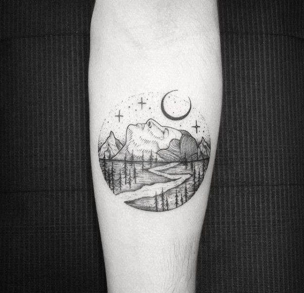各种黑色点刺风格山林图案纹身来自托马斯