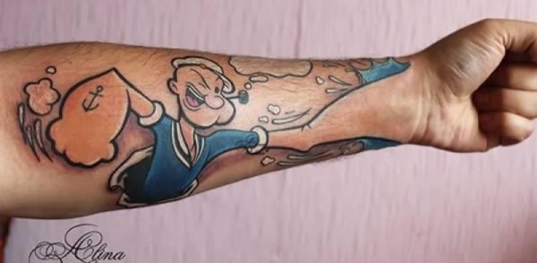 复古卡通红唇美女手臂纹身_卡通纹身图案大全_纹身图吧