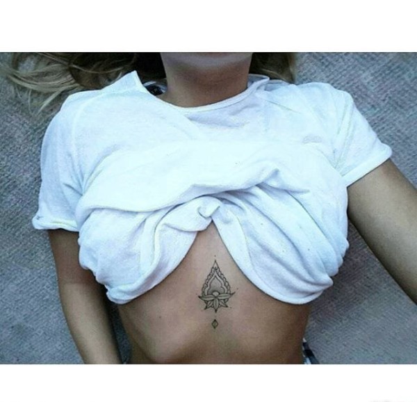 女性胸骨下漂亮的装饰纹身图案来自泽利娜