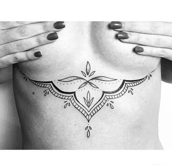 女性胸骨下漂亮的装饰纹身图案来自泽利娜