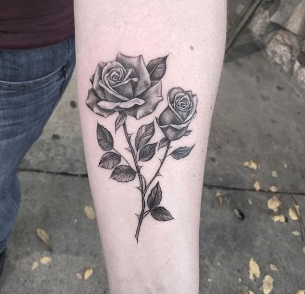 欧美玫瑰纹身 男生手臂上花朵纹身图片
